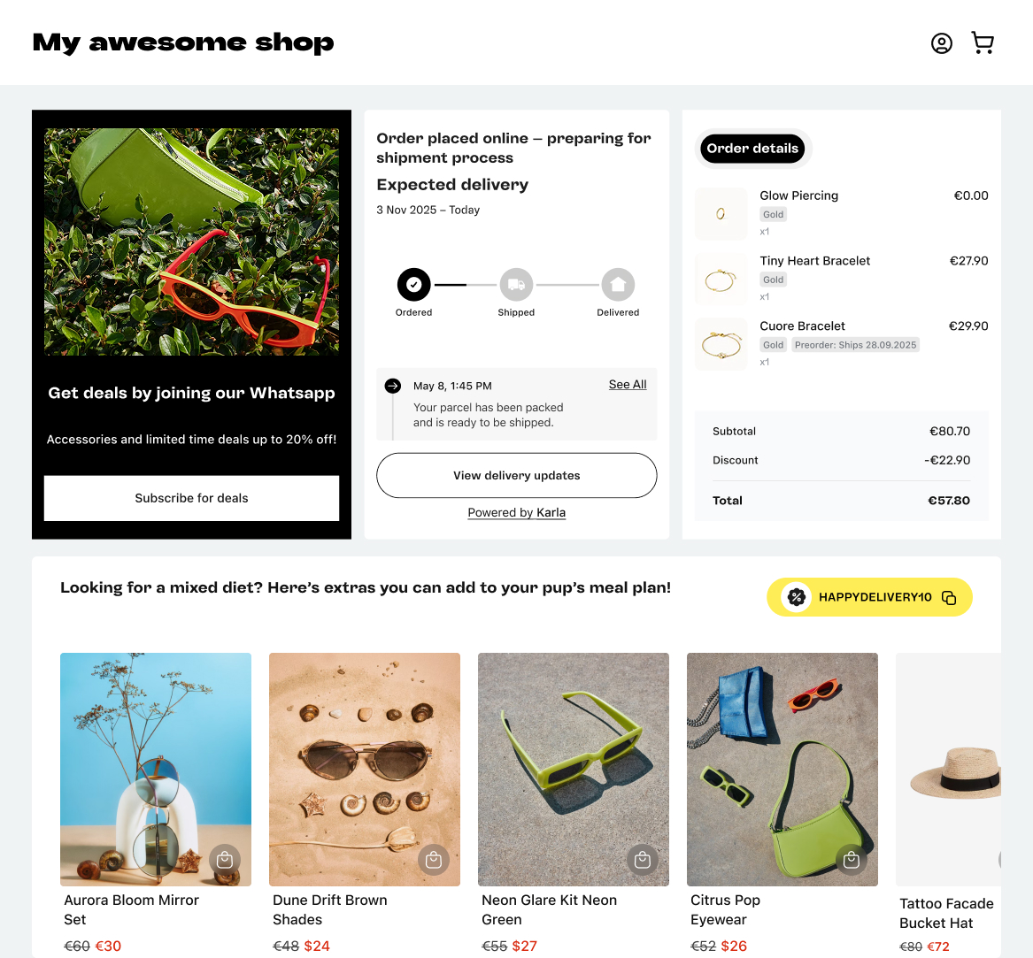 Turn delivery checks into revenue with segmented product discovery, offers, and repeat purchases.